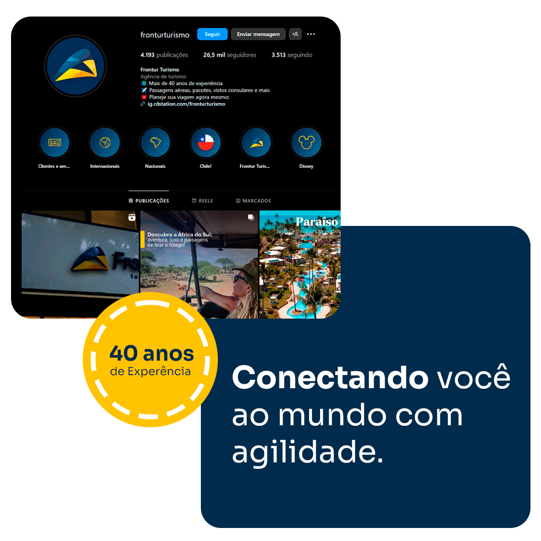 Viajar com a Frontur é ter alguém que te atende com atenção, resolve com agilidade e pensa em cada detalhe pra você só curtir.